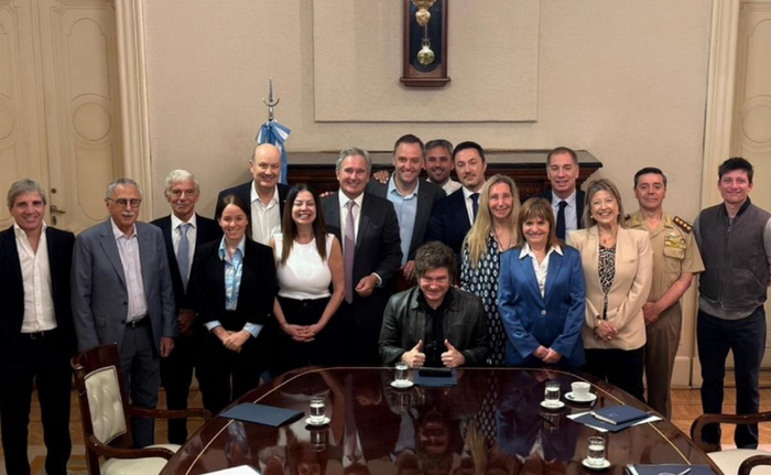 Este lunes, el núcleo duro del gobierno se reunió en la Casa Rosada para definir posiciones de cara a la semana legislativa. Participaron el jefe de Gabinete, Manuel Adorni; los ministros Diego Santilli (Interior) y Luis Caputo (Economía); la jefa del bloque de La Libertad Avanza en el Senado, Patricia Bullrich; la secretaria general de Presidencia, Karina Milei; el titular de la Cámara de Diputados, Martín Menem; el armador nacional Eduardo “Lule” Menem; el secretario de Asuntos Estratégicos, Ignacio Devitt; y el asesor presidencial Santiago Caputo.
